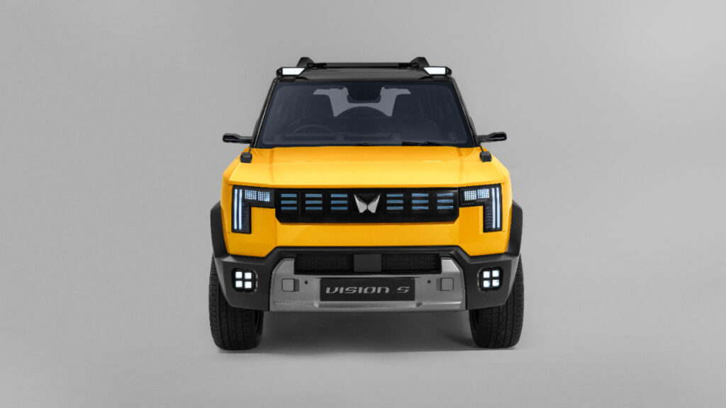 The Mahindra Vision S At the front, it gets dual-pod LED headlights and vertical strips for LED DRLs, all of which look very futuristic. Another smart detail that Mahindra has offered in the concept are illuminated light strips to give it a distinct look at night.